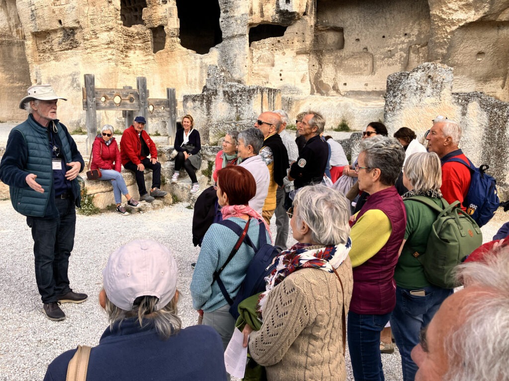 Après le repas, cap sur le château médiéval des Baux, véritable joyau historique perché sur les hauteurs du village. Grâce aux commentaires passionnants du guide, les participants ont pu découvrir l’histoire tumultueuse du site, les vestiges de la forteresse, et profiter de panoramas à couper le souffle sur la Provence.